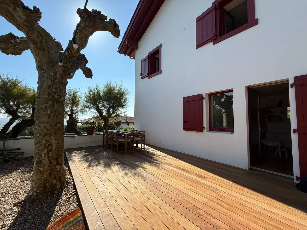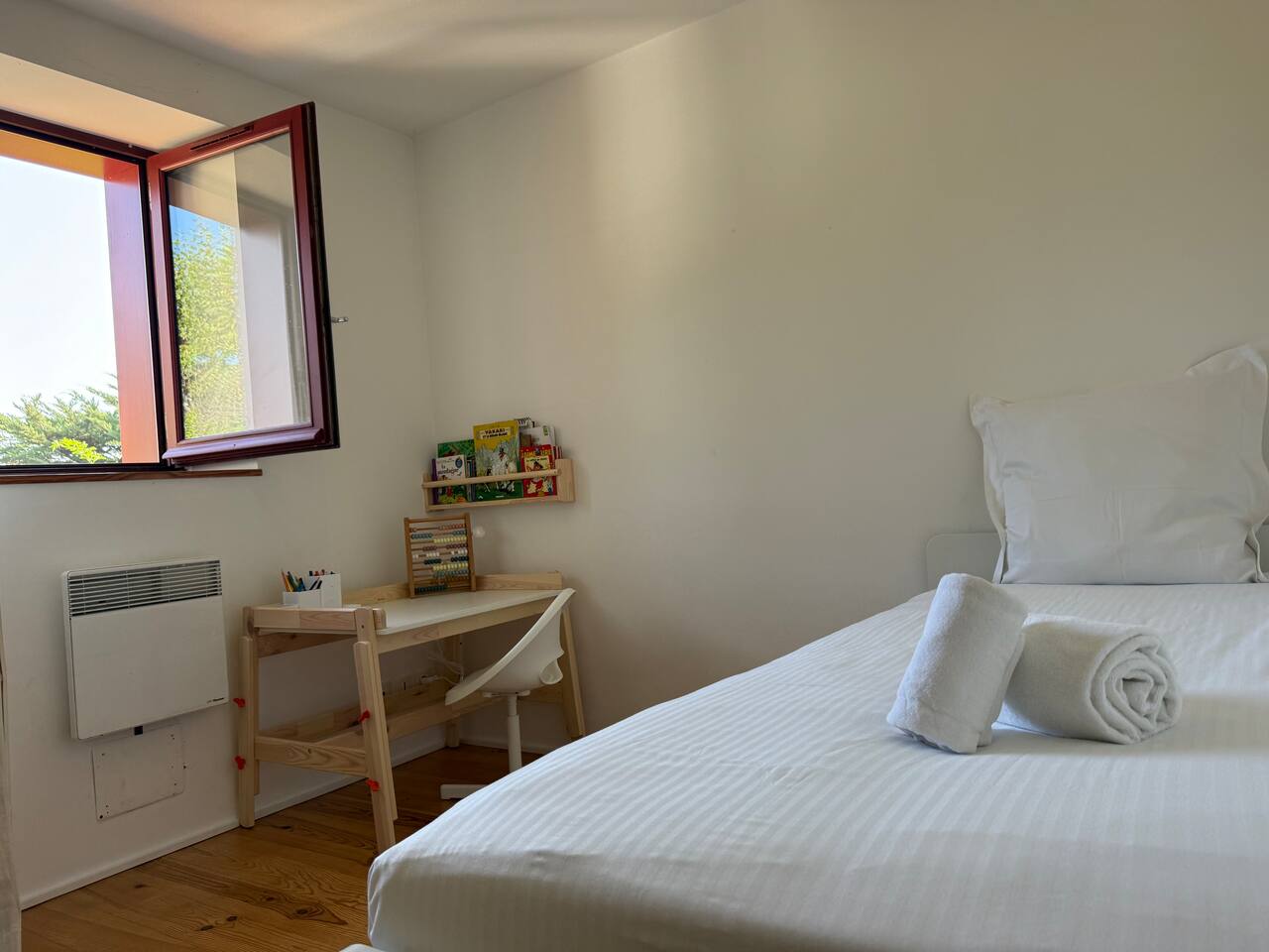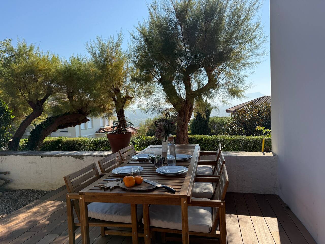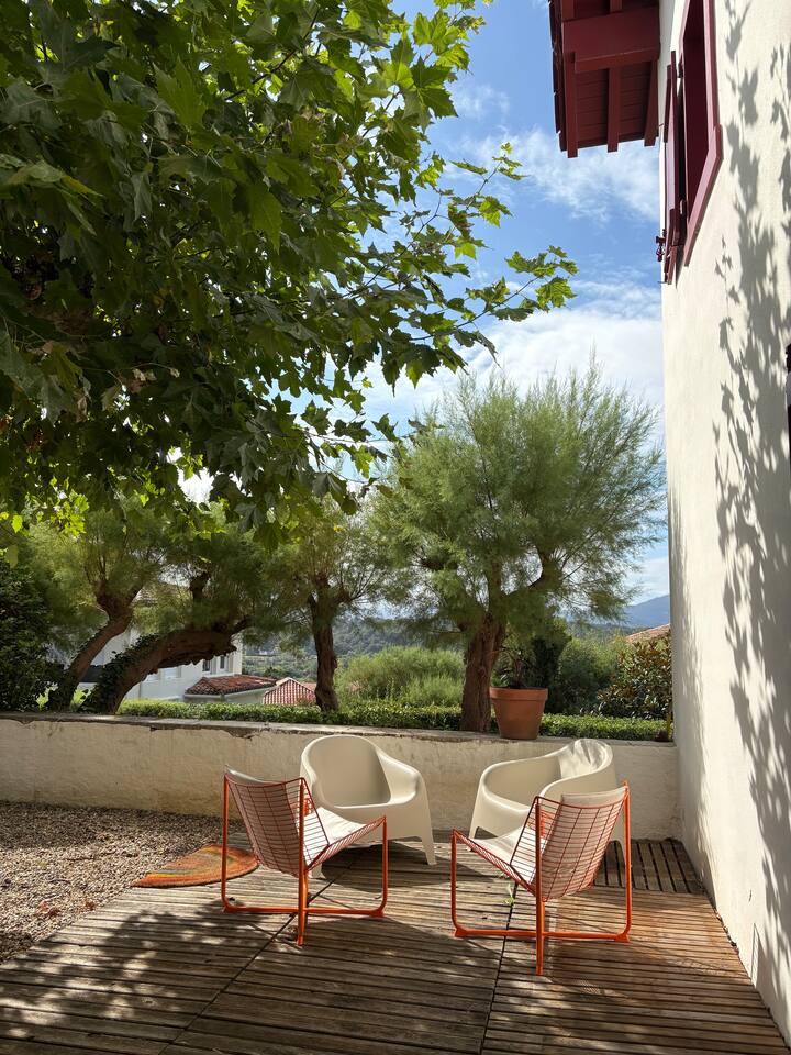 Le logement s’organise sur deux niveaux : Au rez-de-chaussée, vous trouverez un salon lumineux, une cuisine américaine entièrement équipée (lave-vaisselle, four, machine à café, plaques de cuisson, lave-linge, etc.), et un espace de vie confortable ouvrant sur une terrasse en bois avec coin repas extérieur. À l’étage, trois chambres : deux chambres individuelles avec lits simples (90 cm) et une suite parentale avec lit king size (200 cm). Une salle de bain avec baignoire vous offre une vue dégagée sur la Rhune, pour des réveils tout en douceur. Le jardin arboré et une grande terrasse (dont une partie avec mobilier lounge) invitent à la détente à toute heure de la journée. Équipements inclus : Wi-Fi haut débit TV Parking privé dans la propriété Linge de lit et de toilette fourni (ainsi que torchons) Literie, mobilier et électroménager récents Conseils et bons plans sur place pour profiter du Pays Basque Activités à proximité : Plage du Centre de Bidart à pied : baignades, surf, farniente Aire de jeux pour enfants Fronton pour animations et activités locales Sentiers côtiers et nature aux alentours