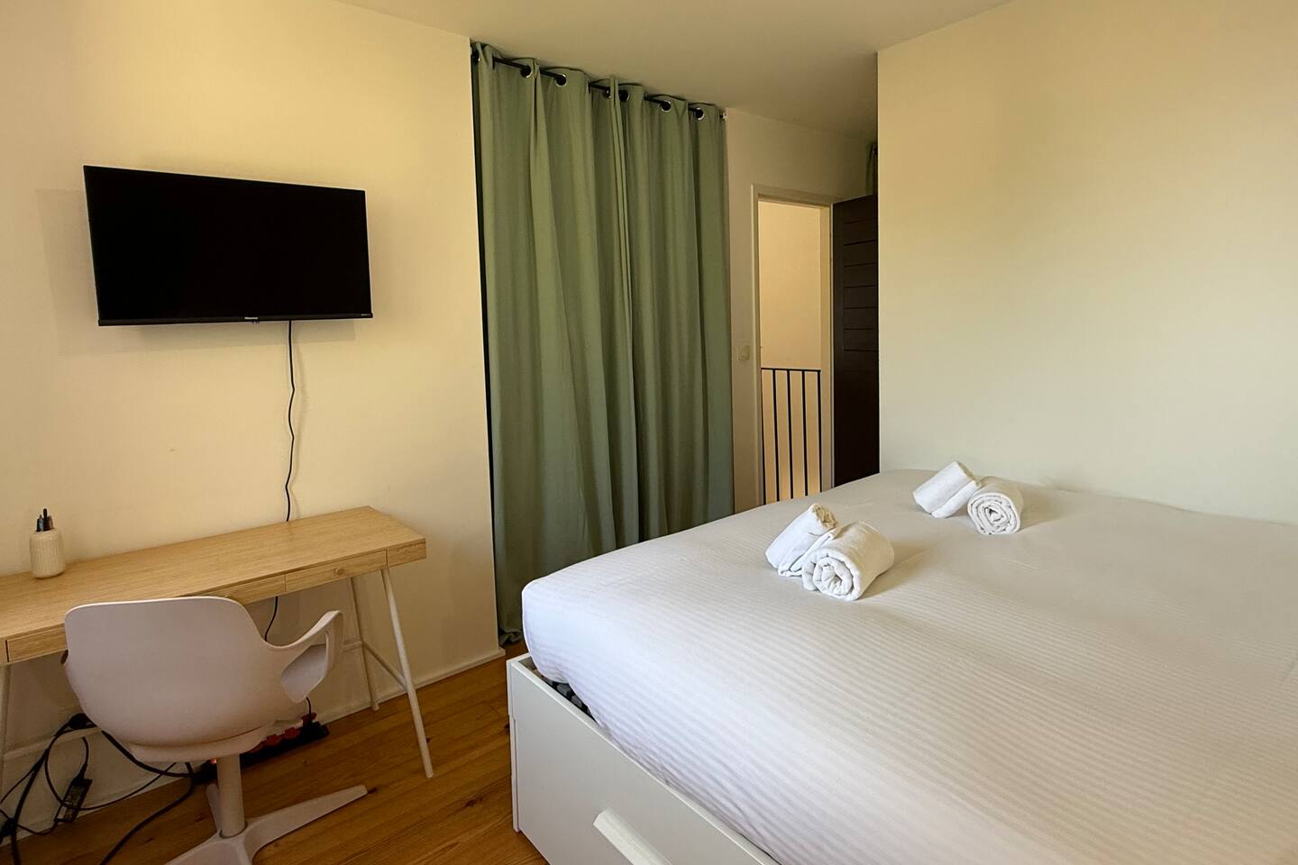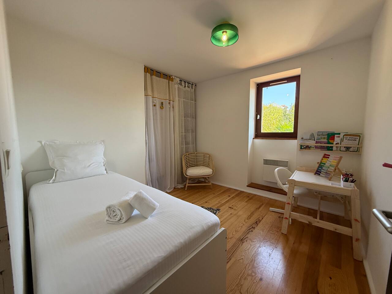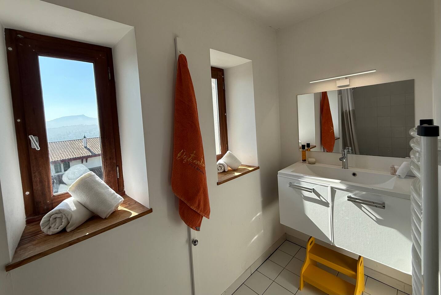 Le logement s’organise sur deux niveaux : Au rez-de-chaussée, vous trouverez un salon lumineux, une cuisine américaine entièrement équipée (lave-vaisselle, four, machine à café, plaques de cuisson, lave-linge, etc.), et un espace de vie confortable ouvrant sur une terrasse en bois avec coin repas extérieur. À l’étage, trois chambres : deux chambres individuelles avec lits simples (90 cm) et une suite parentale avec lit king size (200 cm). Une salle de bain avec baignoire vous offre une vue dégagée sur la Rhune, pour des réveils tout en douceur. Le jardin arboré et une grande terrasse (dont une partie avec mobilier lounge) invitent à la détente à toute heure de la journée. Équipements inclus : Wi-Fi haut débit TV Parking privé dans la propriété Linge de lit et de toilette fourni (ainsi que torchons) Literie, mobilier et électroménager récents Conseils et bons plans sur place pour profiter du Pays Basque Activités à proximité : Plage du Centre de Bidart à pied : baignades, surf, farniente Aire de jeux pour enfants Fronton pour animations et activités locales Sentiers côtiers et nature aux alentours